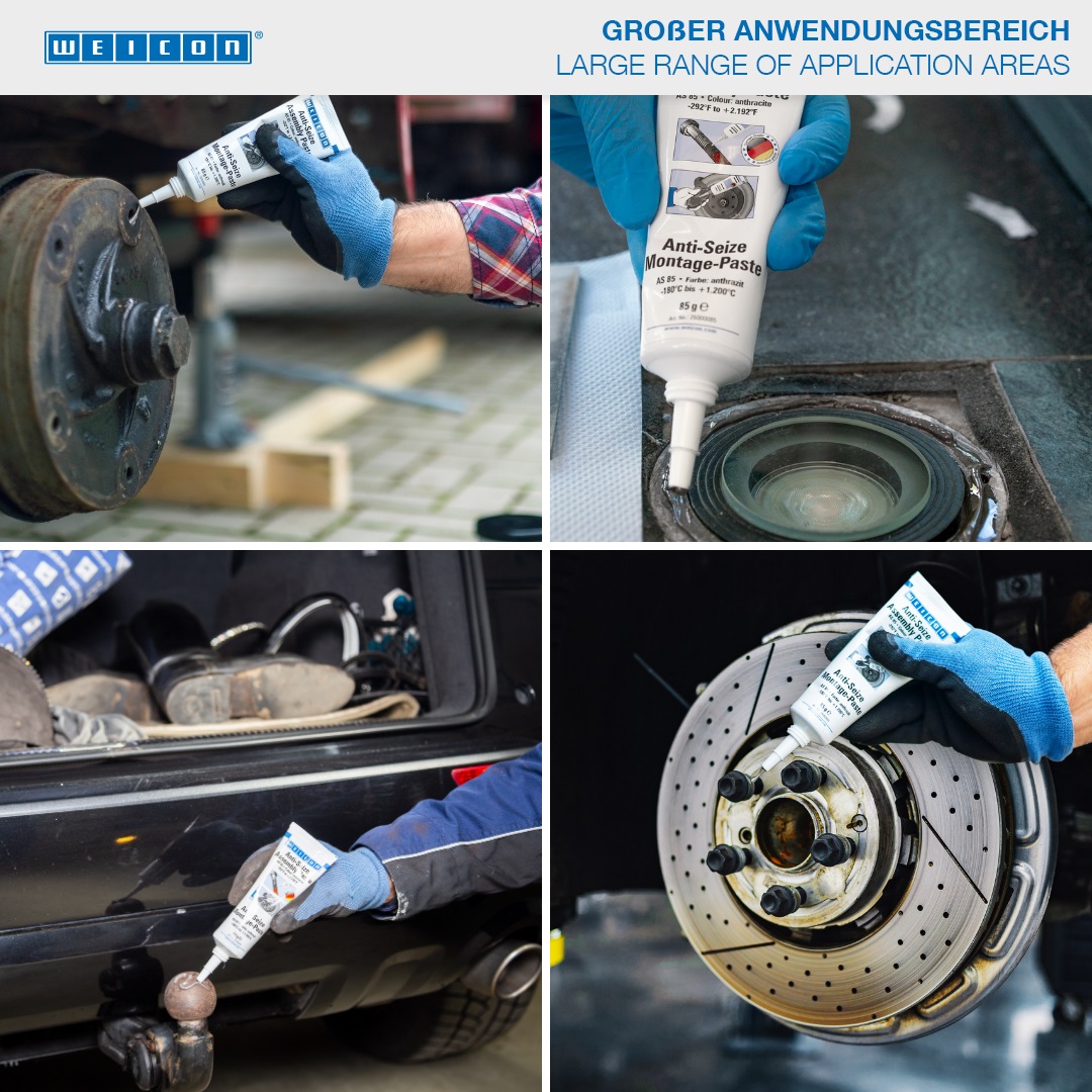 WEICON Anti-Seize yüksek gerilimli parçalar için koruyucu, ayırıcı ve yağlayıcı olarak kullanılır. İdeal olarak uyumlu katı içerikler ve seçilmiş katı maddeler geniş yelpazede kullanım alanı sunar. WEICON Anti-Seize korozyon, yapışma ve aşınma, tutmabırakma fenomeni, oksidasyon, aşındırma korozyonu ve elektrolitik tepkimelerden („soğuk kaynaklama“) korur.