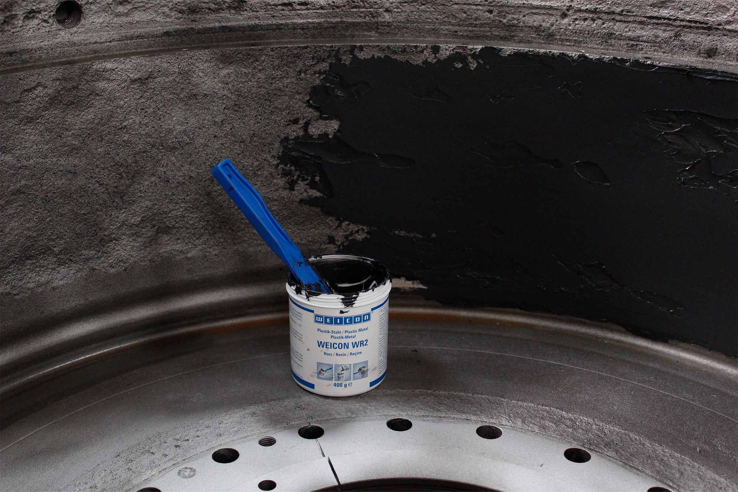 The maintenance of chemical plants is inevitable. Aggressive and abrasive chemicals cause wear to the steel of chemical plants, in this case for example on a hopper. Regular inspections, preventive maintenance and fast repairs are crucial for stable operating processes, low downtimes and high productivity. The epoxy resin system WEICON Ceramic HC 220 is ideal for repair work on machinery and equipment, in apparatus engineering and in other areas of industry. It is characterised by high abrasion resistance and protects heavily used surfaces against wear. Thanks to its temperature resistance of up to +220 °C, its flowability, ceramic filling, chemical resistance and high adhesive strength, it can be used in a wide range of applications.