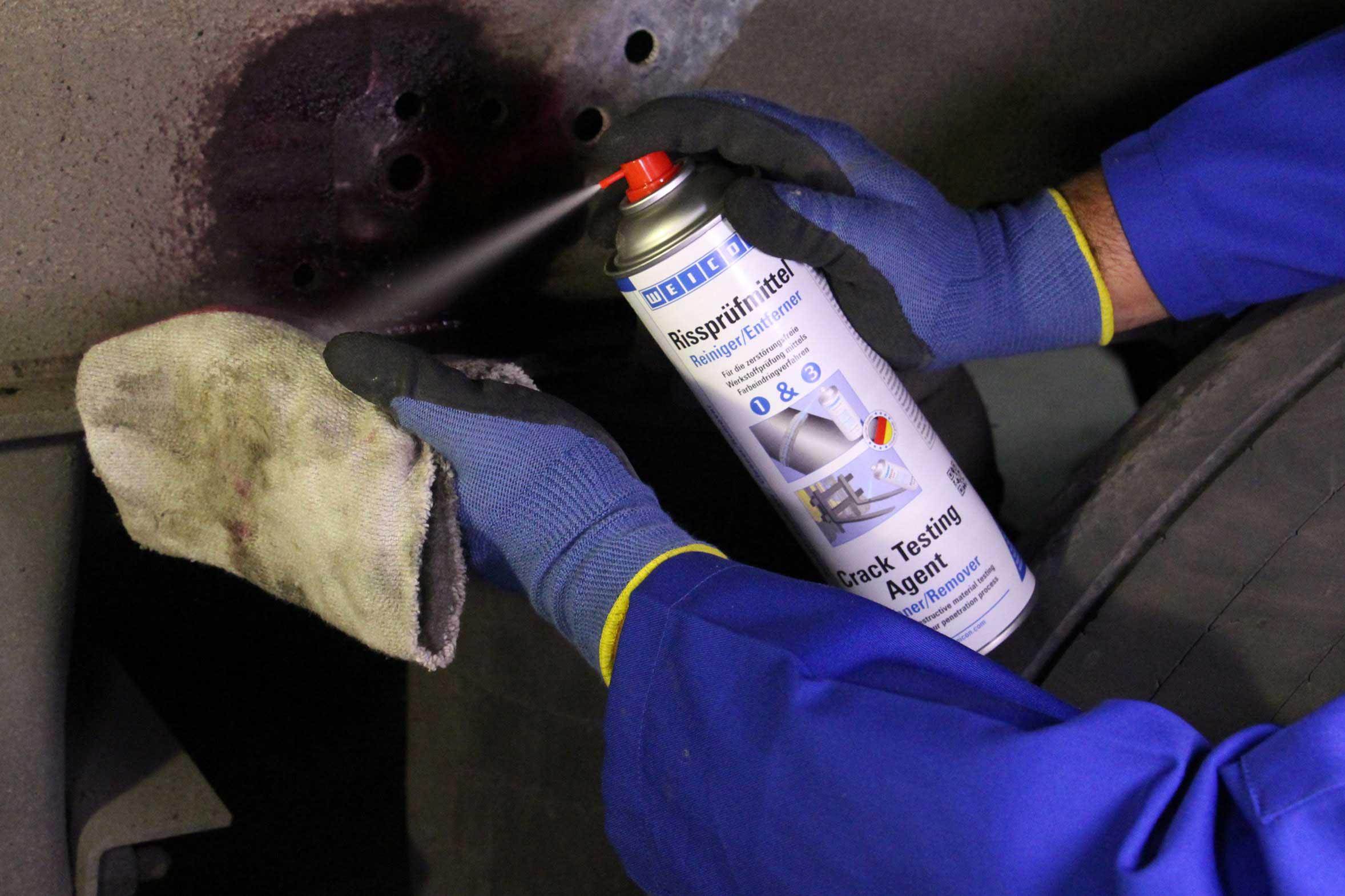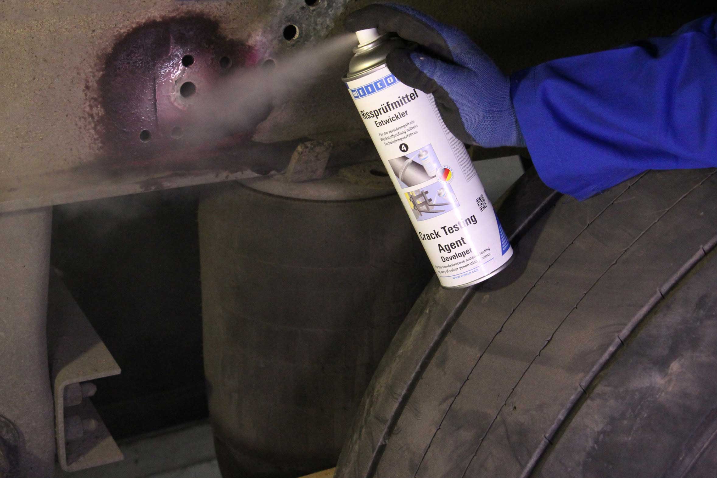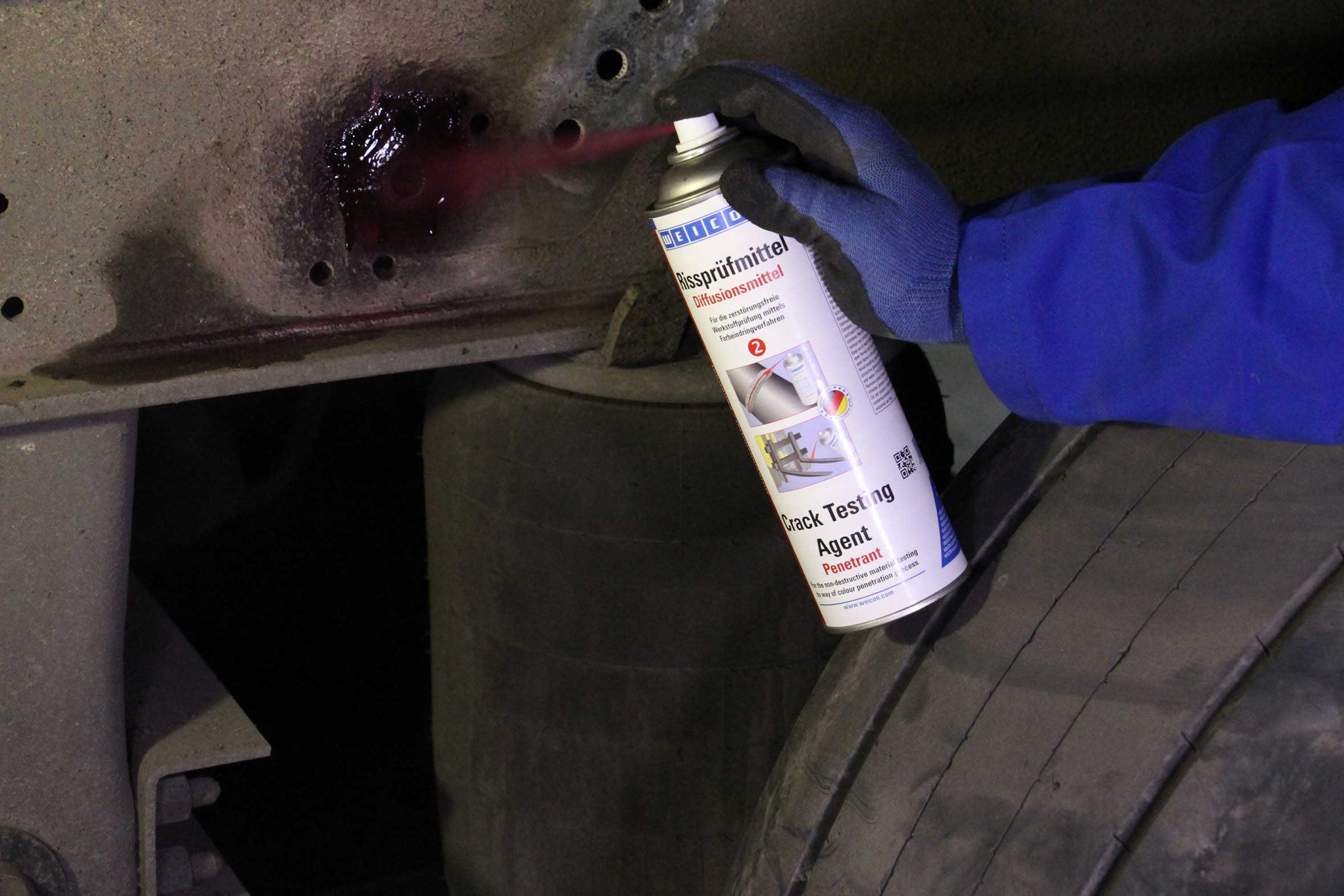 These maintenance measures serve to enhance operational processes and to maximise occupational health and safety. Dye penetrant testing is an established material testing method for detecting and eliminating cracks and small leaks at an early stage. WEICON Crack Testing Agent is a test system made up of three special sprays with which the dye penetrant method can be carried out simply and easily.
