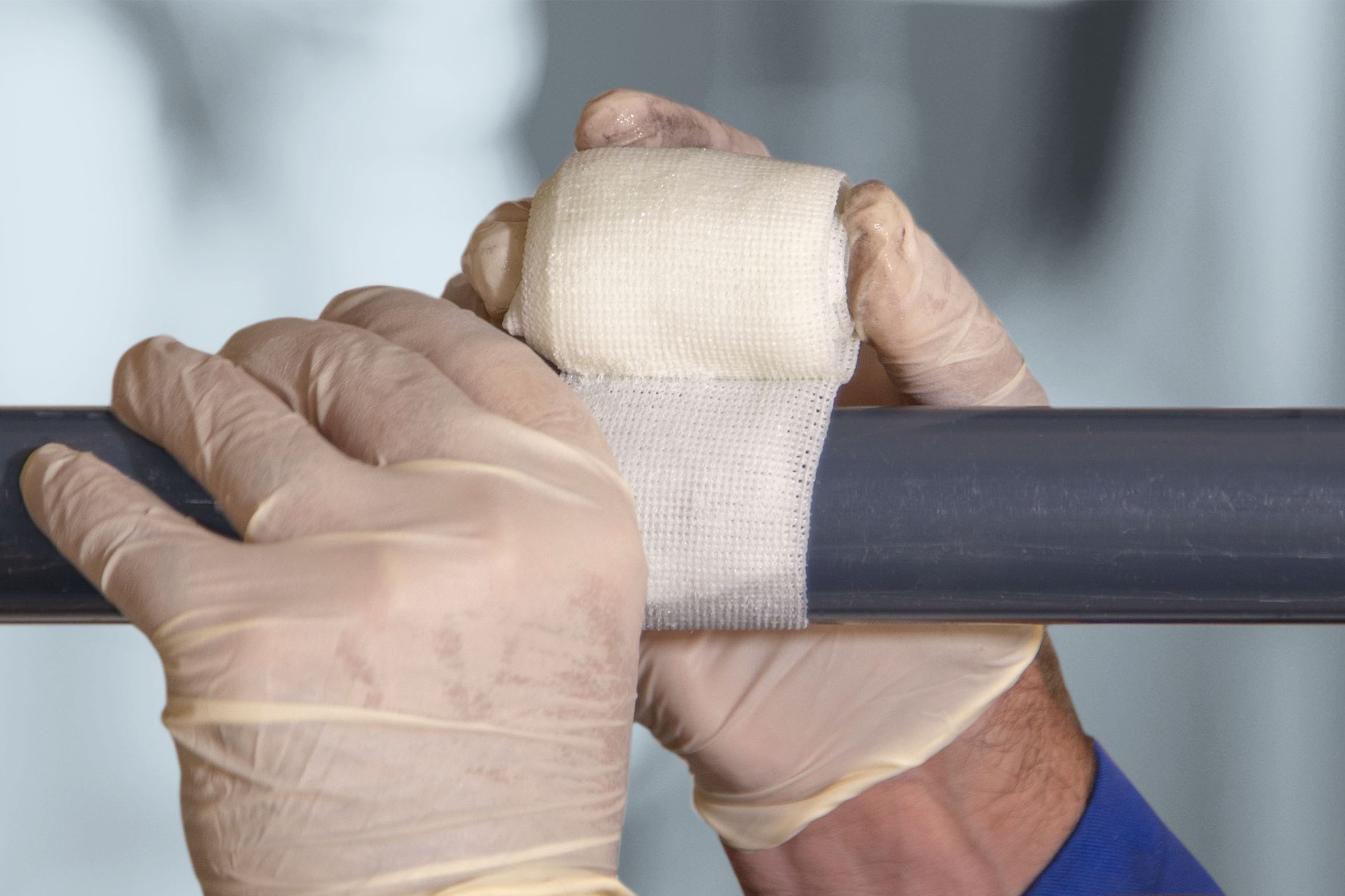 Damaged water pipes need to be repaired as fast as possible. The WEICON Pipe Repair-Kit provides an easy solution for such emergency repairs, for which no special tools are required. The Pipe Repair-Kit can be used to repair and seal leaks in pipes and pipelines extremely fast in order to minimise downtimes. The set includes a Repair Tape, the Repair Stick Multi-Purpose and a pair of gloves to be worn during application.
