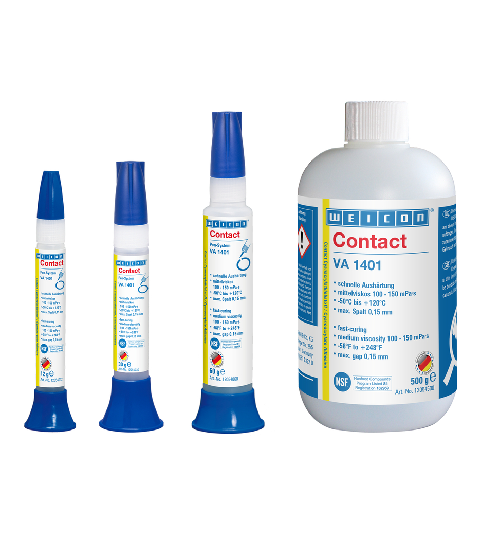WEICON Contact VA 1401 orta viskozitelidir (100-150 mPa•s) ve çabuk sertleşmektedir. Kumaşta, kağıtta, mukavvada, köpük kauçukta ve büyük gözenekli elastomerlerde iyi sonuç vermektedir. VA 1401 metallerin, plastiklerin ve kauçukların kendilerine ve birbirlerine yapışmalarını sağlayan üniversal tiptedir.