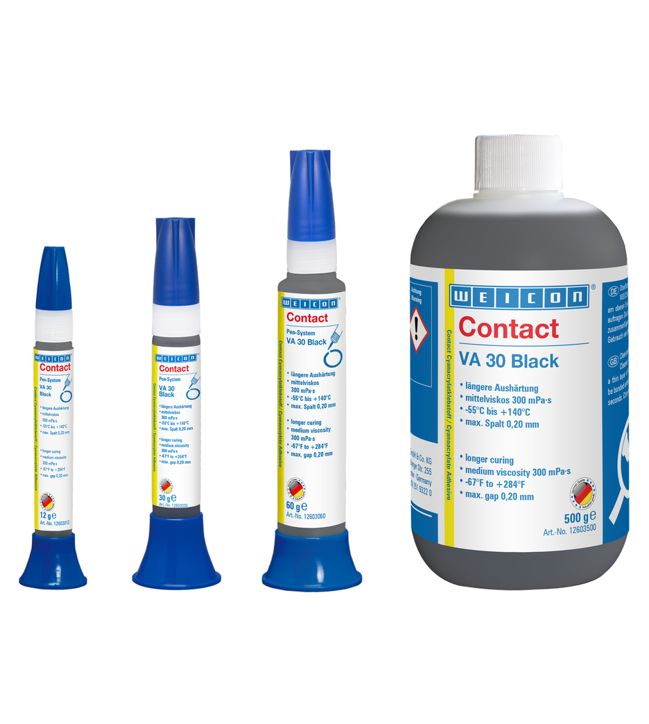 WEICON Contact VA 30 Black orta viskozitelidir (300 mPa•s) ve -50°C (-58°F) ve +135°C (+275°F) arası sıcaklıklara dayanıklıdır. Uzun sertleşme süresine sahiptir, kauçuk dolgulu ve siyahtır, artık esneklikle sertleşir ve yüksek soyulma ve darbe dayanımına sahiptir. Artık esneklikli sertleşmesi sayesinde, WEICON Contact VA 30 Black özellikle değişen iklim şartlarında uygundur. Uzun süreli nem etkisi altında bile hassas değildir.