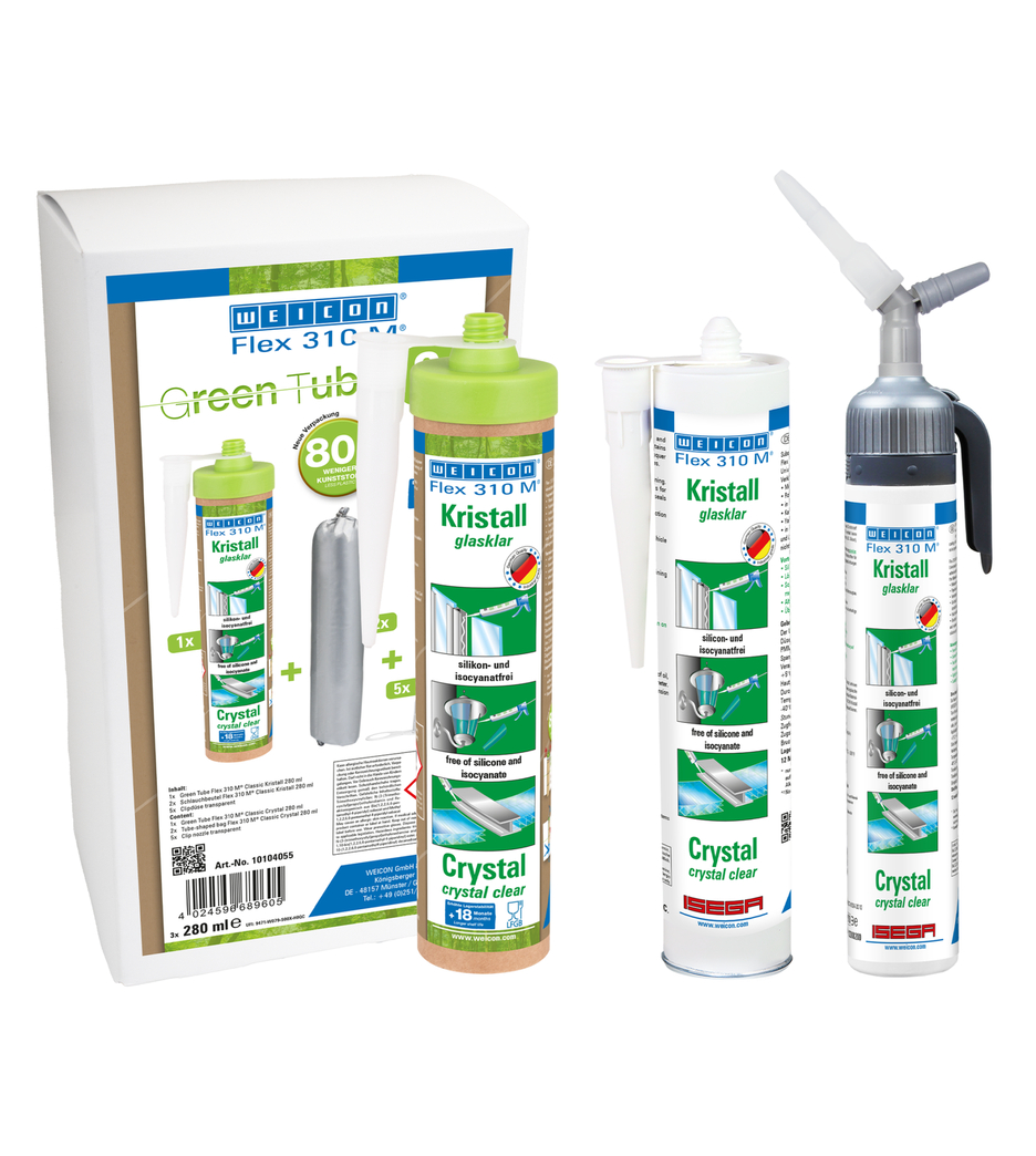 WEICON Flex 310 M Kristal Yapıştırıcı ve Sızdırmazlık maddesi şeffaftır, güçlüdür, boyanabilir (ıslakta ıslak), kumlanabilir ve harika bir yıpranma kararlılığı ve UV ışınlarına direnci vardır. Tatlı suya ve tuzlu suya dirençlidir, silikon, izosiyanat, halojen ve solvent içermez. WEICON Flex 310 M Kristal ISEGA onaylıdır ve gıda teknolojisinde yapıştırıcı olarak kullanılabilmektedir. WEICON Flex 310 M Kristal MS polimer temelde elastik yapıştırıcıdır ve cam, PC**, PMMA** ve akrilik cam** (**= yalnızca gerilimsiz yapışma), metaller, pek çok plastikler, seramikler, ahşap ve taş için uygundur. Flex 310 M Kristal plastik işlemede, metal yapımında, tank ve aparat mühendisliğinde, havalandırma ve klima sistemleri, elektrik ve aydınlatma sektöründe, sergi stand yapımında ve mağaza düzenleme parçalarında ve silikon ve silikon içeren ürünlerin uygun olmadığı tüm uygulamalarda kullanılır. * = Yalnızca gerilimsiz yapışma