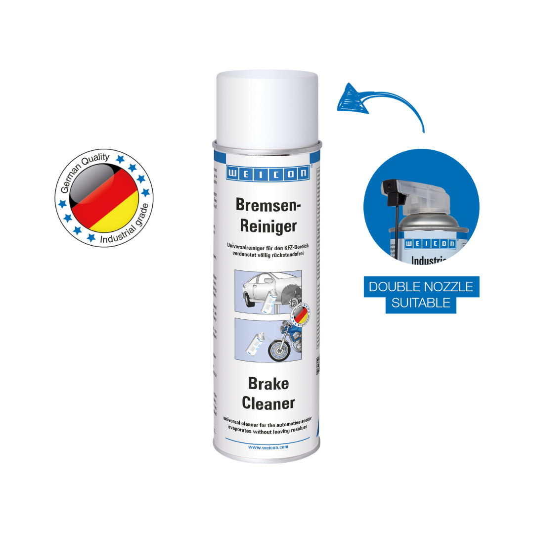WEICON Fren Temizleyici otomotiv sanayii için üniversal temizleyicidir, kalıntı bırakmadan temizler, yağından arındırır ve buharlaştırır. Fren Temizleyici metalleri, camı ve pek çok plastiği hızlı ve kolay bir şekilde yağlarından arındırır ve temizler. Yağlı ve gresli artıklar ve artıkları temizler. WEICON Fren Temizleyici frenlerde (kampanalı ve disk frenler, fren balataları, fren takozları, silindirler, pistonlar ve kovanlar), debriyajlarda (debriyaj balataları ve parçaları) ve motor parçalarında (karbüratörlerde, yakıt ve yağ pompalarında, dişlilerde v.b.) kullanılabilir.