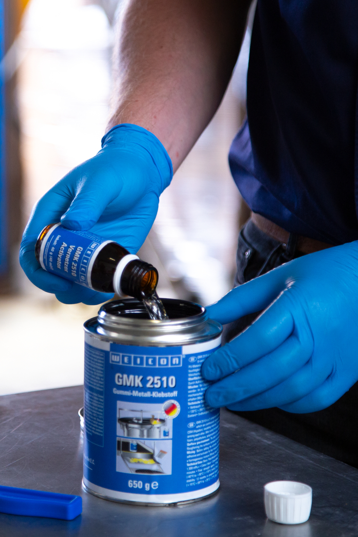GMK 2510 sürekli dinamik yük uygulanan tam yüzey ve kalıcı elastikiyet gerektiren yapıştırmalar için polikloropren bazlı 2-bileşenli bir yapışkandır. 1 K.-kontakt yapıştırıcılara göre avantajı daha iyi bir yapışma gücü ve geliştirilen ısı dayanıklılığıdır. GMK 2510 plastik, metal, tekstil ürünleri, deri, köpük kauçuk (Neopren), CSM (hipalon), yalıtım malzemesi, kaplanmış PU- malzemesi ahşap ve birçok plastik malzenyi hem kendi içlerinde hem de birbirleri ile yapıştırır. WEICON GMK 2510 Polisitren köpüğü, Polietilen, Polipropilen, PVC yumuşak köpük ve PVC suni deri gibi malzemeler için uygun değildir.