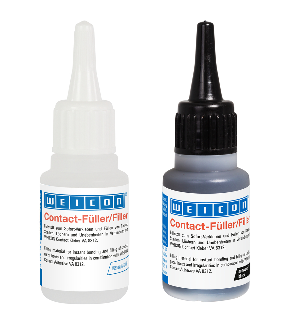 WEICON Siyanoakrilat Yapıştırıcıları; 0,1 mm'den daha büyük boşlukları kapatmak ve çatlakları, delikleri ve pürüzleri doldurmak için özel olarak geliştirilmiş silika bazlı dolgu maddesidir. Bu nedenle Kontakt Dolgu Maddesi, Kontakt Siyanoakrilat Yapıştırıcı ile birlikte sadece yapıştırma için değil, aynı zamanda takviye, şekillendirme, modelleme, sabitleme, doldurma ve düzleştirme için de uygundur.