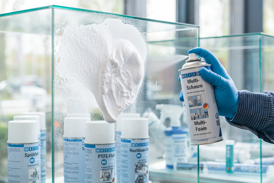 WEICON Multi Köpük Sprey artıksız temizleme için güçlü üniversal temizleyicidir. Fosfat ve formaldehit içermez, korozif ya da kostik maddeye sahip değildir. Çoklu Köpük metal, plastik, cam, seramik veya laklı ve kaplı yüzeyler gibi çeşitli yüzeyleri temizlemek için kullanılır. WEICON Multi Köpük Sprey sanayide, küçük işletmelerde ve özel sektörde üniversal olarak kullanılabilmektedir.