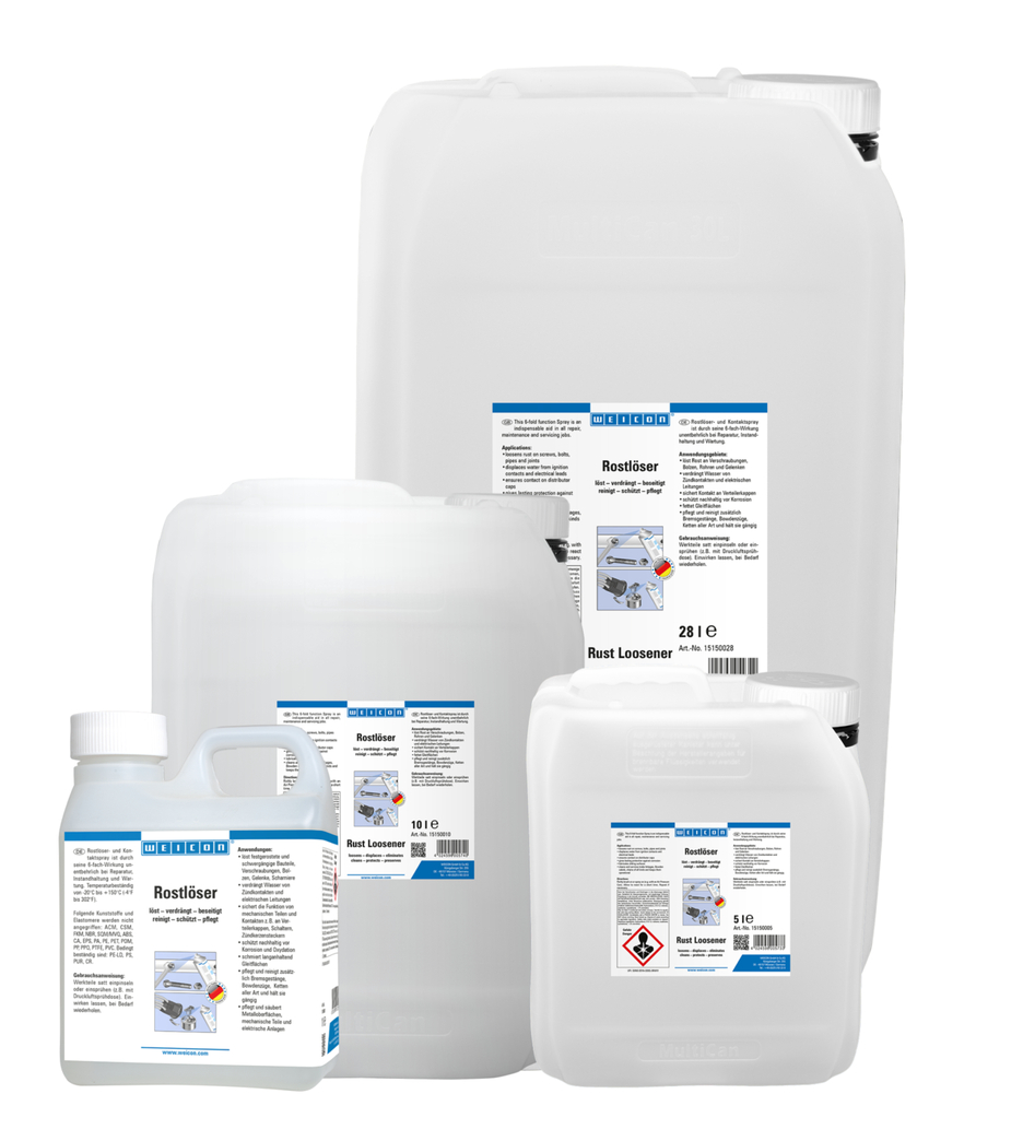 WEICON Pas Sökücünün altı-kat fonksiyonu onu onarım, bakım ve servis için vazgeçilmez yapar. Mükemmel sürünme kapasitesi ile WEICON Pas Sökücü en küçük oyuklara bile ulaşır. WEICON Pas Sökücü paslı ve katı parçaları, vidaları, cıvatalar, birleşme yerleri ve menteşeleri gevşetir. Korozyona ve oksidasyona karşı kalıcı olarak korur. Kaygan yüzeyleri dayanıklı bir biçimde yağlar. Metalik yüzeyleri ve mekanik parçaları temizler ve bakımlarını yapar.