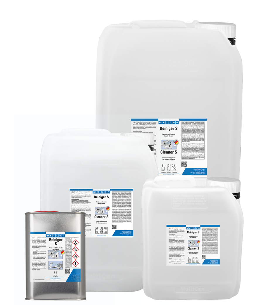 WEICON Temizleyici S kalıntı bırakmadan temizler, yağından arındırır ve buharlaştırır. Temizleyici Sprey S metallerde, camda, seramiklere, çoğu plastikte kullanılabilir. WEICON Temizleyici S astardan ve boyadan önce temizlemek ve yağlardan arındırmak için vaya diğer WEICON ürünlerinin kullanımında yağlı bir alt tabakanın etkiyi bozacağı durumlarda ürünleri uygulamadan önce ve makine parçalarını temizlemek için kullanılır.