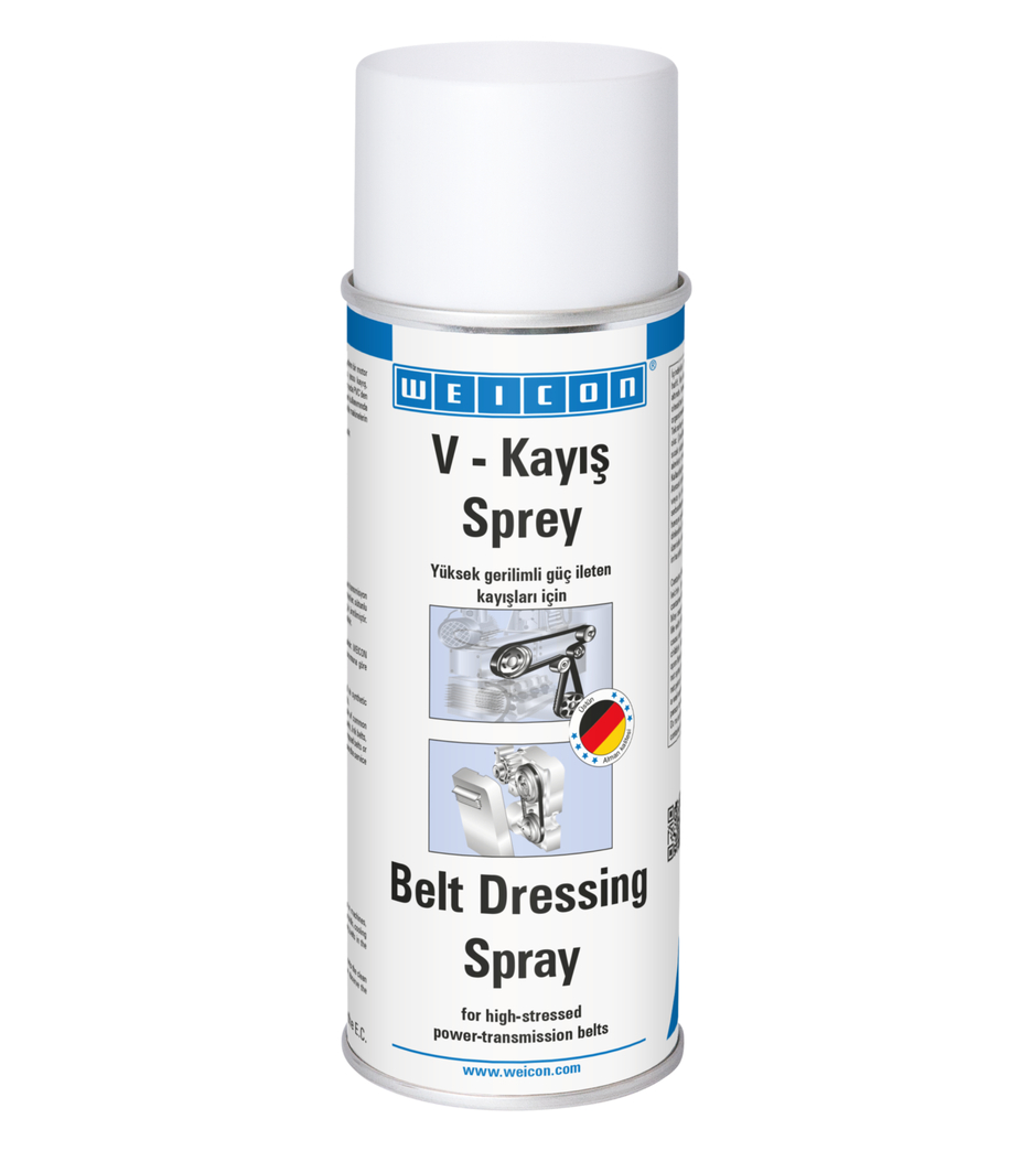 WEICON V-Kayış Spreyi çeşitli ağır gerilimli tahrik kayış tipleri için sentetik elastomer bazlı şeffaf kemer kaplamasıdır. Çalışma ömrünü artırır, makinelerin ve sistemlerin dayanıklılık sürelerini uzatır, kayış kaymasını önler, tam tahrik kapasitesi iletir, gıcırtıyı yok eder ve önler, gözeneklere nüfuz eder, çekme dayanımının etkinliğini artırır, sürtünmeyi artırır ve yapışmaya yardımcı olur, statik yüklemeyi önler, esneklik sağlar ve yıpranmaya karşı korur. V-Kayış Spreyi Kumaş, deri, kauçuk ya da PVC gibi çeşitli kayışlardan yapılmış pek çok bilindik malzeme için uygundur. V-kayışlar, bağlantı kayışları, tahrik kayışları, düz kayışlar, yuvarlar kayışlar, dişli kayışlar, transmisyon kayışı, oluklu kayışlar ya da konveyör kayışlar için uygundur. WEICON V-Kayış Spreyi özellikle makinelerdeki tüm tahrik kayışları, agregalar, kompresörler, pompalar, jeneratörler, konveyörler, frezeler, sütunlu matkaplar ve soğutma üniteleri için uygundur. İlgili güvenlik yönetmeliklerine uyulduğu takdirde çalışma sırasında da kullanılabilir.