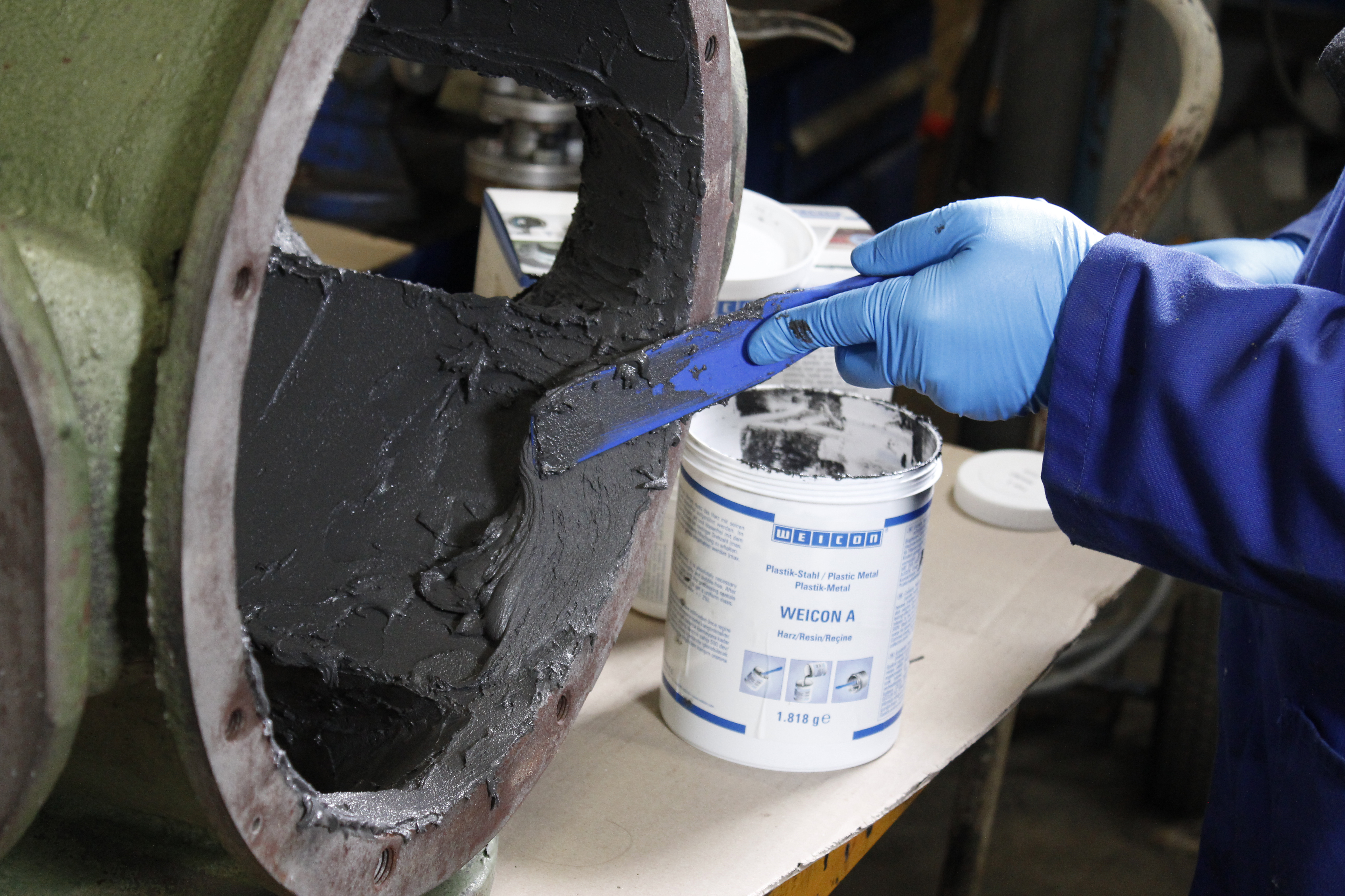 WEICON A DNV GL sertifikasına sahiptir ve özellikle denizcilik sektöründeki onarım ve bakım çalışmaları için uygundur. Epoksi reçine sistemi yüksek oranda çelik pigmentlerle doludur, manyetiktir ve dikey yüzeylerde bile işlenebilecek kadar macunsu yapıdadır. Korozyon hasarını ve oyuklanmayı gidermek veya delikleri ve boşlukları onarmak için kullanılabilir. Örneğin, korozyon ve oyuklaşma nedeniyle ciddi şekilde hasar görmüş ağır çelik bileşenlerin reprodüksiyonu için kullanılabilir. WEICON A, epoksi reçinenin uygulanmasında kaynakta olduğu gibi termal bozunmaya neden olmadığından, kaynağa gerçek bir alternatiftir. 2 bileşenli sistem, tank ve borulardaki onarımların yanı sıra motor veya pompa gövdeleri ve makine parçalarındaki çatlakları onarmak için de kullanılabilir. Boruların ve hatların güçlü ortam etkilerine maruz kaldığı kanalizasyon sistemlerinde kullanım için idealdir. Diğer uygulamalar arasında modellerin, kalıpların, aletlerin ve germe tertibatlarının imalatı yer alır. WEICON A makine mühendisliğinde, alet yapımında, çimento endüstrisinde, enerji santrallerinde, model ve kalıp yapımında ve diğer birçok endüstriyel alanda kullanılabilir.