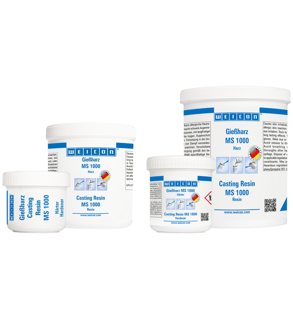 WEICON Dökme Reçinesi MS 1000, yüksek mekanik dayanıma sahip şeffaf ve çok akışkan bir epoksi reçine sistemidir. Çok çeşitli uygulamalara imkan sağlar. MS 1000 metal, ahşap, sert köpük ve birçok plastiğe iyi yapışır. Geniş alanların yapıştırılmasında veya kompozit dişli kovanlarının ve vidaların lamine edilmesinde kullanılabilir. Epoksi reçine sistemi, çok düşük viskozitesi sayesinde, elektrikli bileşenlerin dökümü için de çok uygundur. Fiber kompozit malzemelerin üretiminde, alet ve kalıp yapımında, elektrik endüstrisinde, makine mühendisliğinde ve daha birçok endüstriyel alanda kullanılabilir. MS 1000, cam elyaf kumaşta iyi bir ıslanma ve penetrasyon sergiler ve bu sayede, fiber takviyeli bileşenlerin üretimi için cam, aramid ve karbon fiberlerin lamine edilmesi için çok uygundur. Ayrıca farklı dolgularla (toz, lifli ve kumaş benzeri) kolaylıkla karıştırılabilir.