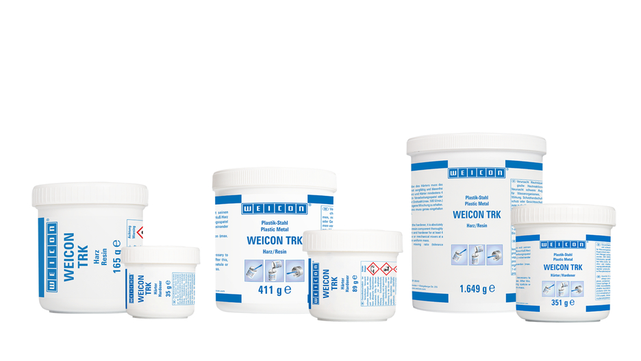 Epoksi reçine sistemi WEICON TRK, metal yüzeylerin korunması için yüksek mukavemetli seramik parçacıklara sahip bir aşınma korumasıdır. Yüksek aşınma direncine ek olarak, sistem iyi kimyasal dirence ve titreşim veya gerilme altında bile metallere ve seramiklere mükemmel yapışma özelliğine sahiptir. Aşınma koruması kendiliğinden düzleşir ve çok düzgün ve eşit bir yüzey oluşturur. WEICON TRK ayrıca makine mühendisliğinde sabitleme, yapıştırma ve dolgu için de kullanılır - örneğin alüminyum parçaların paslanmaz çeliğe yapıştırılması için. Aşınma koruması için tipik uygulamalar arasında pompalar, siklonlar, oluklar, konveyör sistemleri, toz hatları, ayırıcılar ve bunkerler bulunur. Makine mühendisliğinde WEICON TRK, makine parçalarının ve kılavuz rayların sabitlenmesi veya tüm makinelerin yeniden kaplanması için kullanılır. Sistemin makine parçalarını uyarlamak ve sabitlemek için bir döküm bileşiği olarak kullanılması, genellikle uzun işlem sürelerini önemli ölçüde azaltabilir.