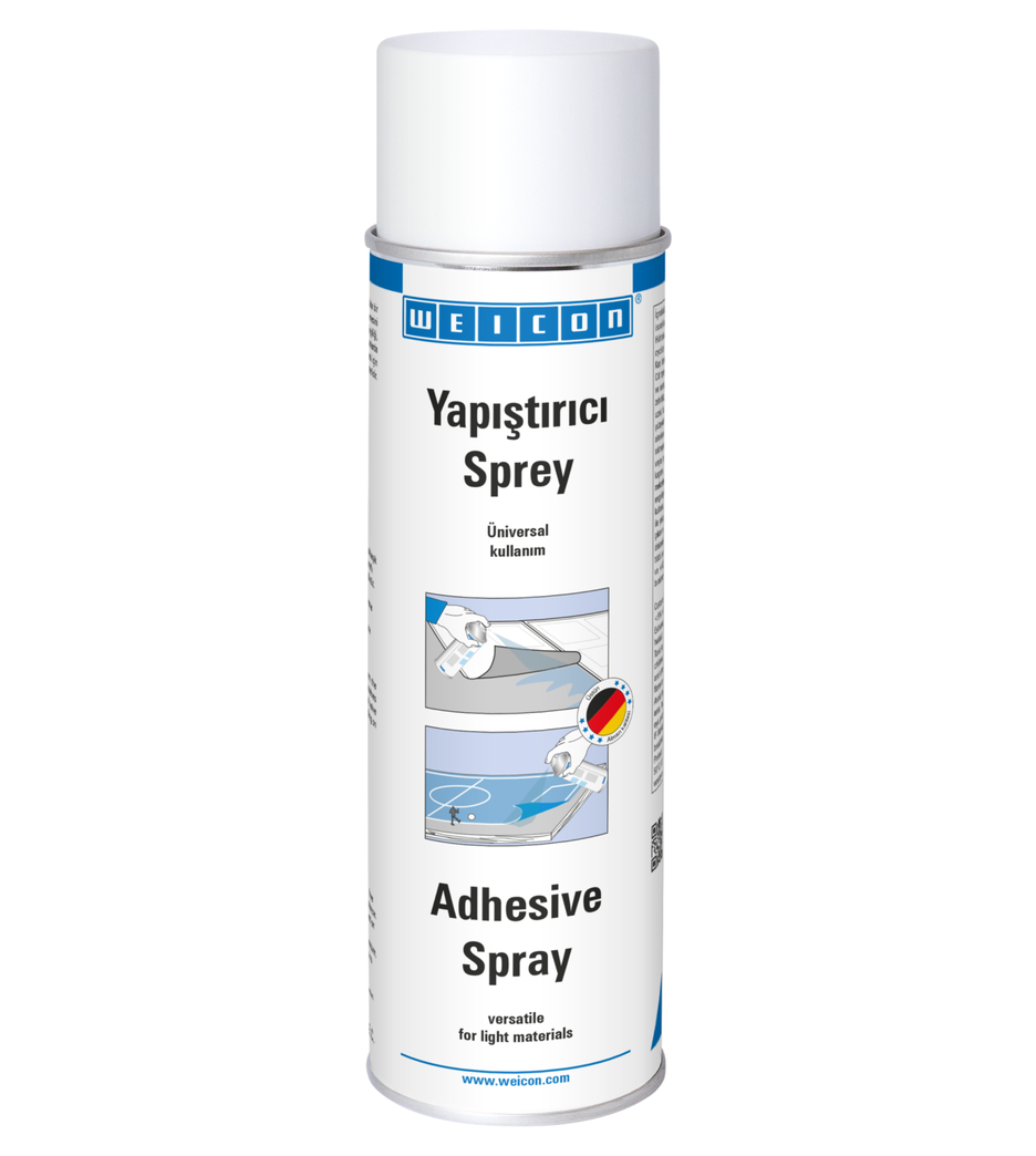 WEICON Yapıştırıcı Sprey üniversal olarak hafif malzemeleri kendilerine ve Diğerleri malzemelere yapıştırmak için kullanılabilir. Yapıştırıcı Sprey kağıt, mukavva, karton, ahşap, ince kaplamalar, mantar, deri, tekstil ürünleri, keçe, yumuşak köpük, kauçuk ve plastik film (PVC ve polietilen dışında) gibi çeşitli malzemelerin yapışması için uygundur. Özellikle sert köpüğün (ör; polistiren) yapışması için uygundur.