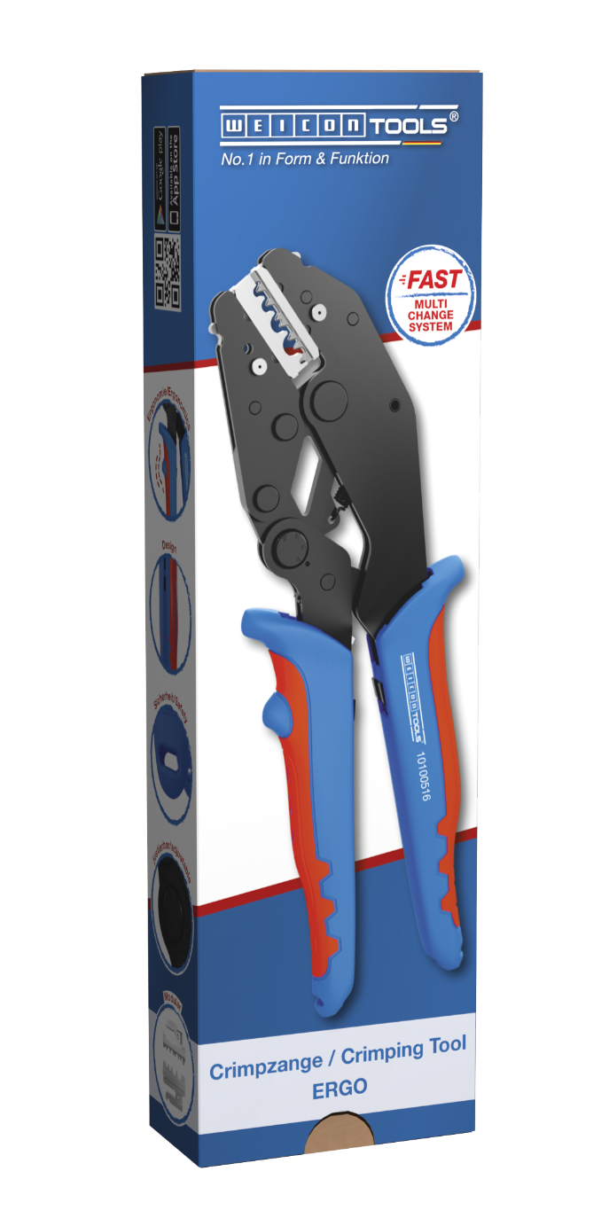 ERGO sıkma penseleri, çeşitli elektrik konnektörlerinin güvenilir bir şekilde sıkılması için geliştirilmiştir. Penseler, sürekli yüksek sıkma kalitesi ve tekrarlanabilir hassasiyet için pozitif kilitli bir mandal mekanizmasına sahiptir. Bu mekanizma, sıkma işlemi tamamen tamamlandıktan sonra penseyi açar. Yanlış kullanım durumunda yaralanmaları önlemek için sapta acil serbest bırakıcı bulunur. Bir diğer özellik ise, hassas eksantrik ayarıyla yüksek sıkma kalitesi sağlayan ayarlanabilir sıkma kuvvetidir. Çoklu Değiştirme Sistemi, sıkma modüllerinin gerektiğinde hızlı bir şekilde değiştirilmesini sağlar. Bu aletsiz ve basit değiştirme işlemi, modüllerin hızlı bir şekilde takılıp çıkarılmasını sağlar. ERGO sıkma penseleri, yüksek kaliteli çelikten yapılmış üç çift modül içerir. Bir modül, 2,5 mm², 4 mm² ve 6 mm² (14-10 AWG) kablo kesitlerine sahip MC4 konnektörler için uygundur. Bir modül çifti, 0,25-6 mm² (AWG 24-10) yalıtımlı kablo uç halkaları için uygundur. Üçüncü modül çifti, 0,5-6 mm² (AWG 22-10) yalıtımlı kablo pabuçları için tasarlanmıştır. Üç modül çifti, güvenli ve toz geçirmez saklama için küçük bir plastik kutuda muhafaza edilmiştir. Ek modül çiftleri aksesuar olarak mevcuttur. İki bileşenli kulplar, maksimum güç iletimi için kaymaz ve ergonomik bir çalışma sağlar. Kulplar, aynı zamanda hoş bir his sağlayan kanıtlanmış „Ice-Crack-Design“ a sahiptir. Kulplardaki entegre halkalar, düşme koruma ipi takmak için kullanılabilir.