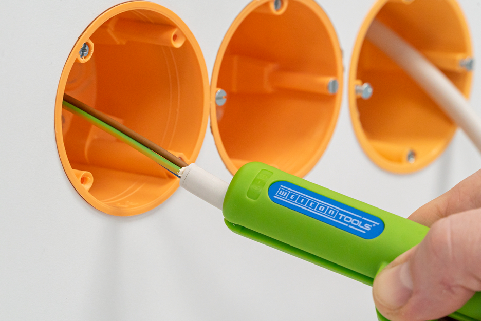 WEICON Sıyırma Aletleri; tüm yaygın yuvarlak kabloların hassas, hızlı ve güvenli bir şekilde sıyrılmasını sağlar. Sıyırma aletleri ürün yelpazesi, kolay kullanım ve doğru sonuçlar sağlayan farklı tipler içerir. • Kesme derinliğini ayarlamadan Yuvarlak Kablo Sıyırıcı No. 13; 6-0 - 13.0 mm çapındaki tüm yaygın yuvarlak ve ıslak oda kablolarının (örneğin, 3 x 1,5 mm² ila 5 x 2,5 mm² NYM kabloları) hızlı ve rahat bir şekilde sıyrılmasını sağlar. Kesme derinliğinin manuel olarak ayarlanması gerekli değildir. Böylece yeni çalışma aralığı, 3 x 0,75 mm² gibi 6 mm'den küçük tel çapları için de uygundur. • Ergonomik sap şekli sayesinde aletin kullanımı son derece rahattır. Kendine özgü sapı, yuvarlak kablo sıyırıcı No. 13'ün güvenli ve kaymaz bir tutuş sağlamasını sağlar. Bu özellik sayesinde günlük işleriniz kolaylaşır, ayrıca iş güvenliğinizi artırır. • Yuvarlak ve yerden tasarruf sağlayan alet ucu, modern duvar kutusuna iyi şekilde uyum sağlar. Daha uzun şekli, derin yerleştirilmiş boşluklu duvar kutuları ve ulaşılması zor alanlarda sıyırma yaparken erişimi daha da kolaylaştırır. • Yeni bıçak düzeni sayesinde, kablo kılıflarının kalıntıları nedeniyle oluşan elektro galvanizli bıçakların tıkanması önlenir. • Olası küçük seriler veya aynı şerit uzunluğuna sahip teller üretmek için, muhafazaya bir uzunluk durdurucu entegre edilmiştir. • Uzunluk durdurucu, 0,5 cm'lik adımlarla 3 ila 10 cm aralığında yerleştirilebilir • Sabitleme klipsi güvenli saklama sağlar... • 100 Almanya'da ve sağlam, fiberglas takviyeli poliamidden üretilmiştir Solingen'de üretilen yüksek kaliteli bıçak çeliği ve dolayısıyla dayanıklı bıçaklar.